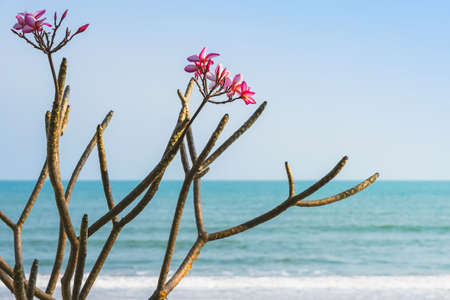Beautiful Plumeria flowers with the sea background in Varkala, Kerala, India