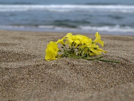Yellow coastal Fynbos flowers on a beach in Cape Town South Africa