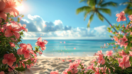Summer Vacation. banner with a beach. free space for text. ocean view. Created by ai