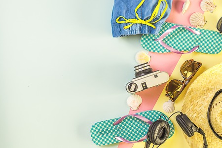 Objects for the summer. Minimalist summer concept .Items to go to the beach