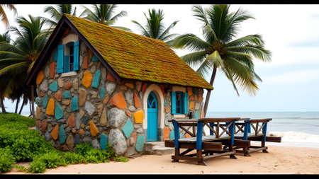 Idyllic bungalow in tranquil Caribbean, surrounded by tropical beauty and luxury generated by artificial intelligence