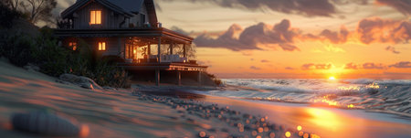 coastal home with stunning view of the beach, waves and sunsets, created with generative ai