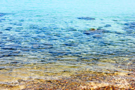 Transparent sea water copy space for text, top view. Aerial view of calm sea water. Top view of a clean ocean water near a coast.