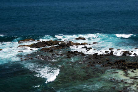 Aerial view to ocean waves. Blue water background. Dramatic colors photo.