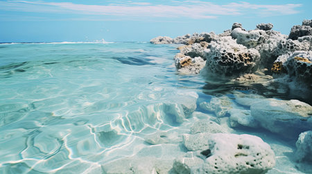 Awe-inspiring coral formations stretch beneath crystal waters, their vibrant patterns creating an underwater realm of mesmerizing beauty