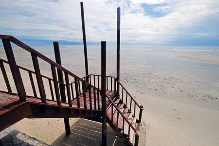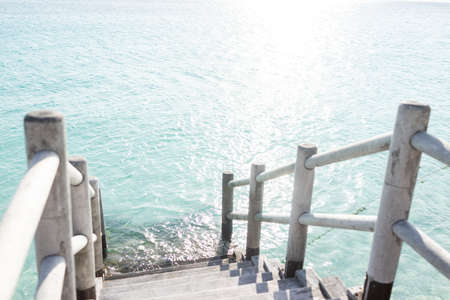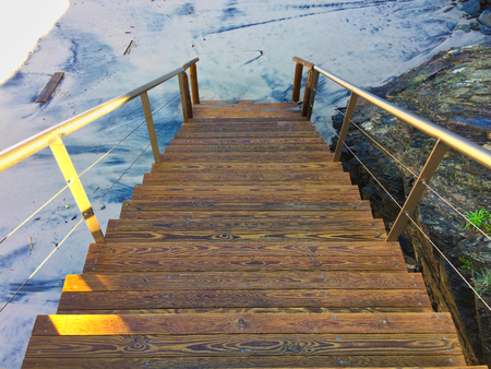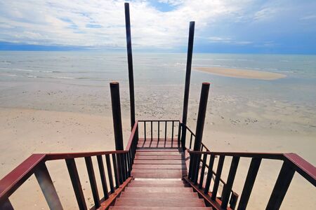 Staircase leading to the sea. Wooden stairs leading to the sea.