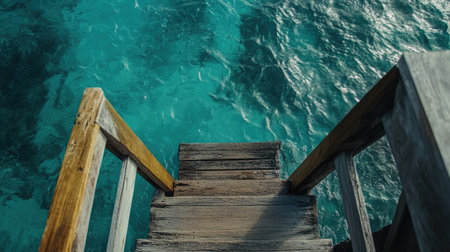 Experience the tranquility of wooden steps leading to clear turquoise water, perfect for beach lovers and travel enthusiasts seeking relaxation and beauty.