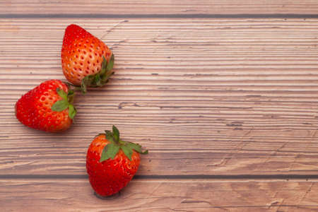 Ripe red strawberries on wooden table. Fresh juice strawberry, healthy food photo