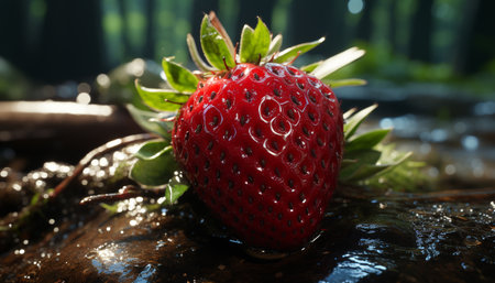 Freshness and sweetness in nature gourmet dessert, a ripe strawberry generated by artificial intelligence