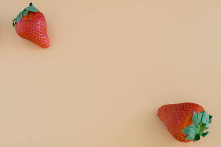 Strawberry fruit on pastel color background with copy space.