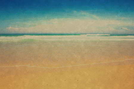 Copy space of smooth wave beach and sand texture background. Summer vacation and business travel concept. Vintage tone filter color style.