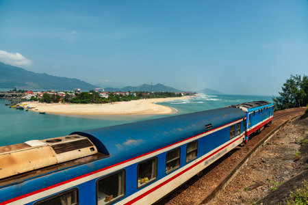 Traveling by train along the coast, Vietnam
