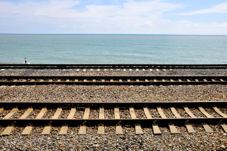 Railway near sea in Mariupol, Donetsk oblast, Ukraine