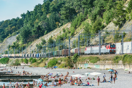 07/17/2017 Krasnodar territory Lazarevskoye city train rushes along the sea coast.