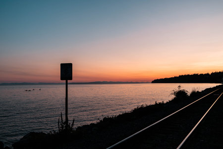 Train route along the San Diego coast at sunset, San Diego, California
