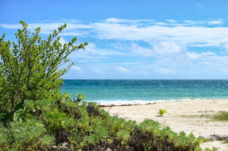 Caribbean beach scene with plant