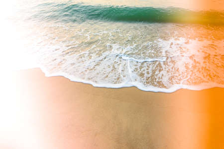 Background soft wave of Sea with foam on sandy beach, copy space.