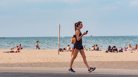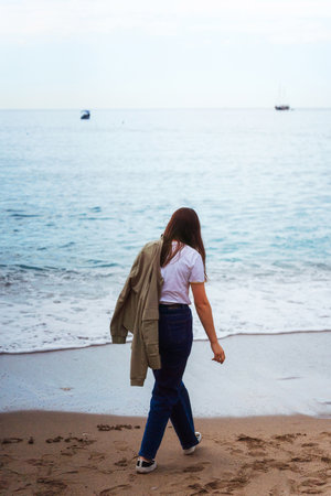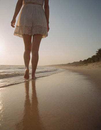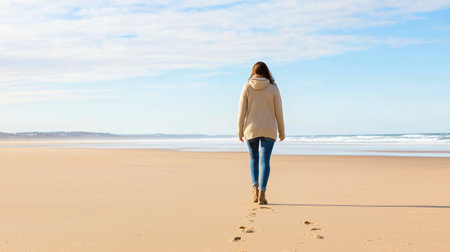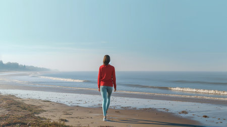 Young Woman Enjoying a Peaceful Walk on the Beach