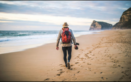 An Anonymous Traveler Finding Reprieve on a Sandy Ocean Beach in Summer
