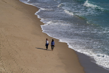RIVIERA BEACH, FLORIDA - MARCH 29, 2022: Unidentified women walk on beach in Singer Island, Florida