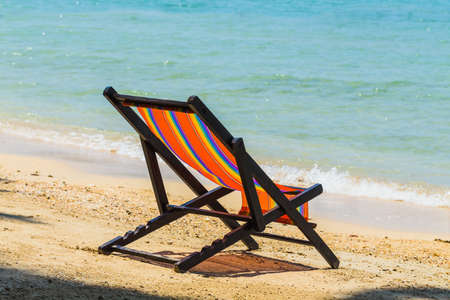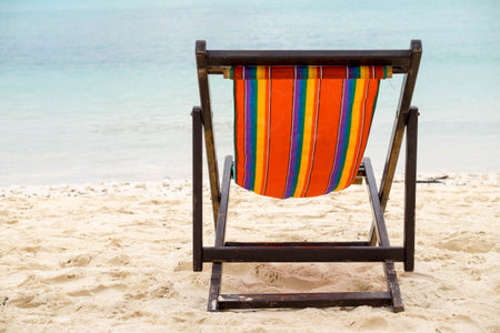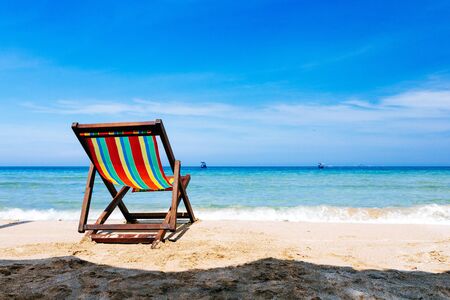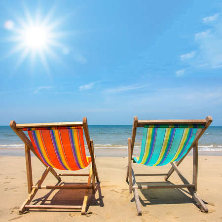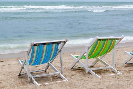 Colorful beach chair on the beach with beautiful Blue sky on sunny day, Relaxing in beach chairs.