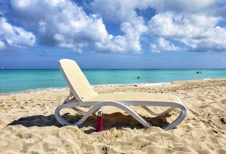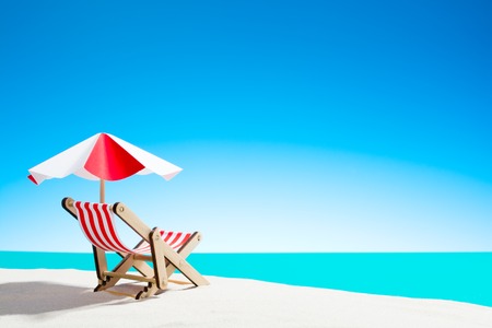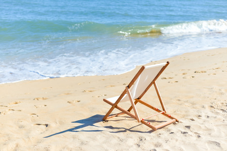 Beautiful beach landscape with chair for relaxation. Travel background outside