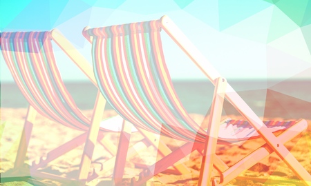 Beach chairs on the sandy beaches for tourists to sit and relax in the soft ocean waves breaking on the beach. Made of paper.