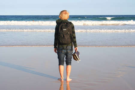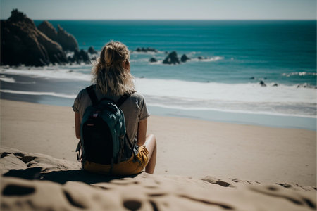 An Anonymous Traveler Finding Reprieve on a Sandy Ocean Beach in Summer