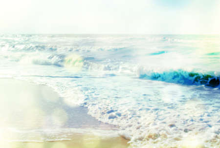 Blur tropical beach with a bokeh sun light wave abstract background.