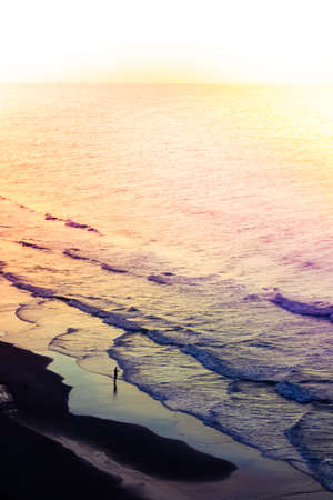 Beautiful coastal sunset with colorful sky and waves on seaside island panoramic background