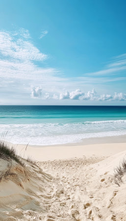 Tranquil Beach Scene with Soft Waves, Clear Blue Skies, and Gentle Breeze on a Sunny Day