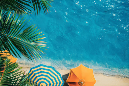 Coastal serenity relaxing day at the beach with umbrellas and scenic ocean views