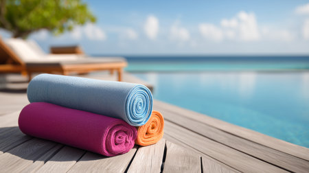 Relaxing poolside towels ready for a perfect summer vacation getaway Generative AI