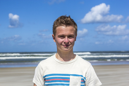 teenager enjoys the beautiful beach under blue sky