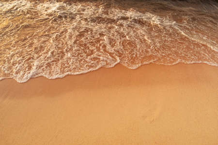 Background soft wave of Sea with foam on sandy beach, copy space.