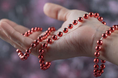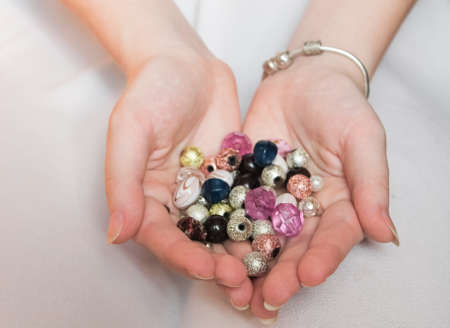 Many beautiful beads in the hands of a girl.