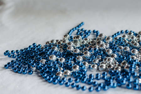 Colorful silver and blue strings of beads for Christmas