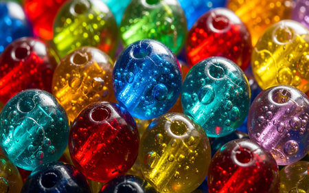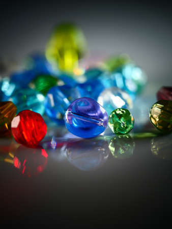 Close up view of different color glass beads