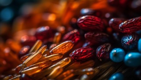 Healthy eating: Fresh fruit and organic plant based nutritional supplements generated by artificial intelligence