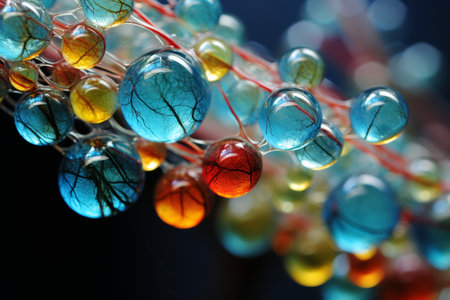 AI Generated. Close-up of colorful drops liquid bubbles molecules background