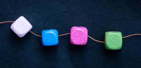 some colored cubes with letters, sign with wooden cubes
