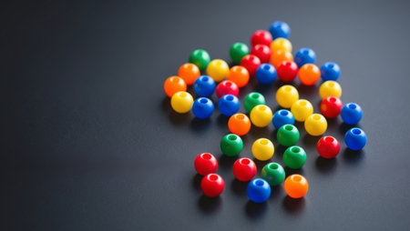 AI Generated. Colorful Plastic Beads on a Black Background