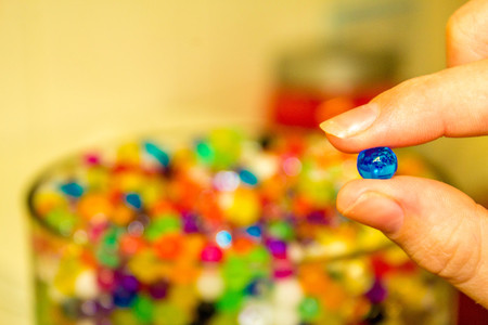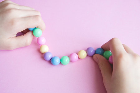 gently spring colored beads in children's hands.