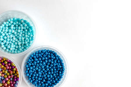 Edible pearls, grains and dragees, very colorful to decorate cakes and desserts.