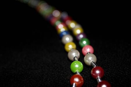 colorful Pearl strings abstract, background row of pearl ornaments on black background- Image