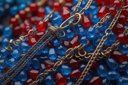 blue and red gradient background and beads.