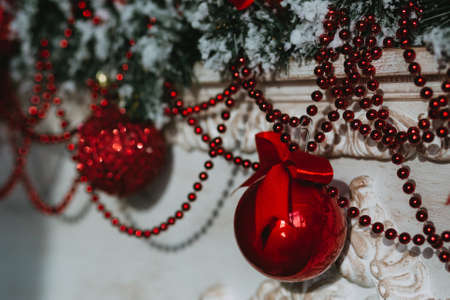 Christmas garlands with red Christmas tree balls