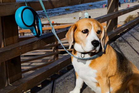 happy beagle puppy dog, coaches teams to sit with the dog sitter, winter.