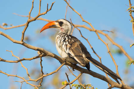 A Von der Deckens Hornbill perched on a dry branch observing its environment, on the lookout for predators