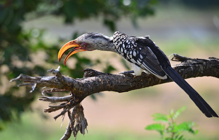 The southern yellow-billed hornbill Tockus leucomelas in the Etosha National Park, Namibia